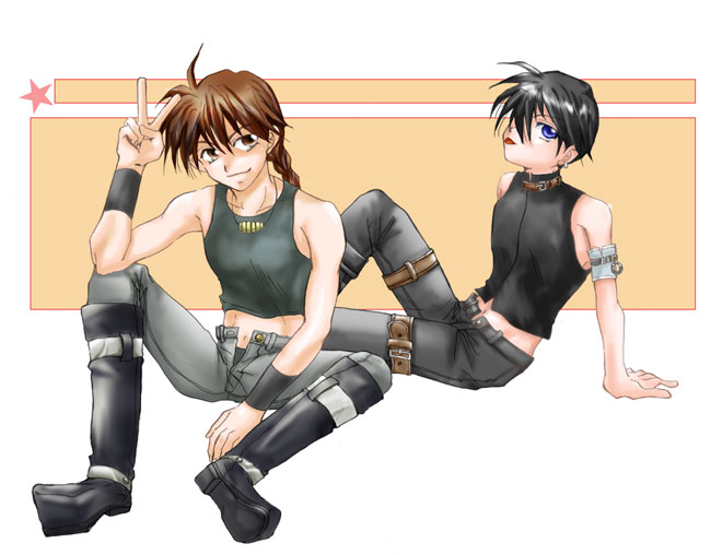 2005/04/21 ― 傭兵少年 ― 足が不自然にブッ千切れてるのは見なかったことにして下さい。 傭兵をイメージしたので、色目が暗いなぁ。 黒系ばっかりのクセになぜか目がチカチカするよ・・・・(^^;) 加工後TOPお迎えイラストはこちら。。。