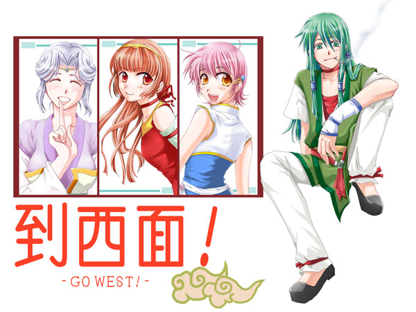 2007/07/12 ― なんとなく全員絵 ― これで今度から色指定で悩まなくてすむわぁ(え?) さんぞーさんがムダにきょにゅーになりすぎて反省。 「至西面!」は「西へ!」と入力したら変換された中国語です。 真偽は不明なので違っててもそっとしておいてください。 ぼんやりこの絵をみてたら、だんだんこんな風↓に見えてきた。